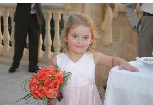 Do I have a choice of flowers for my bouquet? Beautiful fresh flowers are available in Cyprus all year round and we have put together a wide selection for you to choose from for your bridal bouquet, buttonholes and bridesmaids flowers. Your wedding co-ordinator will be able to show you pictures of bouquets and help and advise you if you are not sure which type or style to choose. If you have something specific that you would like that isn't detailed here or in our downloadable booklet, then please do not hesitate to ask or, even better, send us a picture of what you have in mind so that we can find out from the florist whether it is available in Cyprus. We can generally get any colour of flower that you require but, if we can't, then the florist will spray them for you! The flowers will be delivered to your hotel by the florist a couple of hours before the wedding. We can also arrange flowers for your reception venue and standing arrangements for the wedding location, as well as gift bouquets and flowers for your hair.